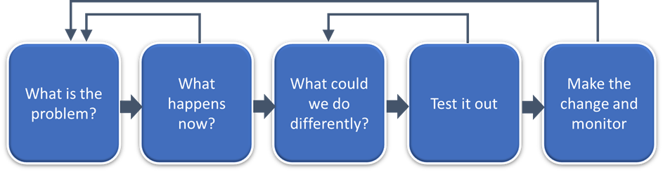 To prevent such scenarios playing out we need to shift focus, effort and resource to fully understanding a problem, and away from contriving solutions… there is a relatable Einstein quote in there somewhere. This of course aligns well with intent expressed by NHS Impact that leaders become problem-framers, not problem-solvers. In our 5-step improvement approach below, it is in Steps 1 and 2 that we seek to fully understand a problem, before contemplating solutions.