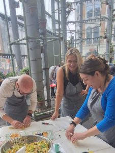 Working side by side, our team formed a high-performing production line—grating, chopping, rolling, filling, and wrapping their way through five hours of food preparation. It was a fantastic display of teamwork, energy, and community spirit.